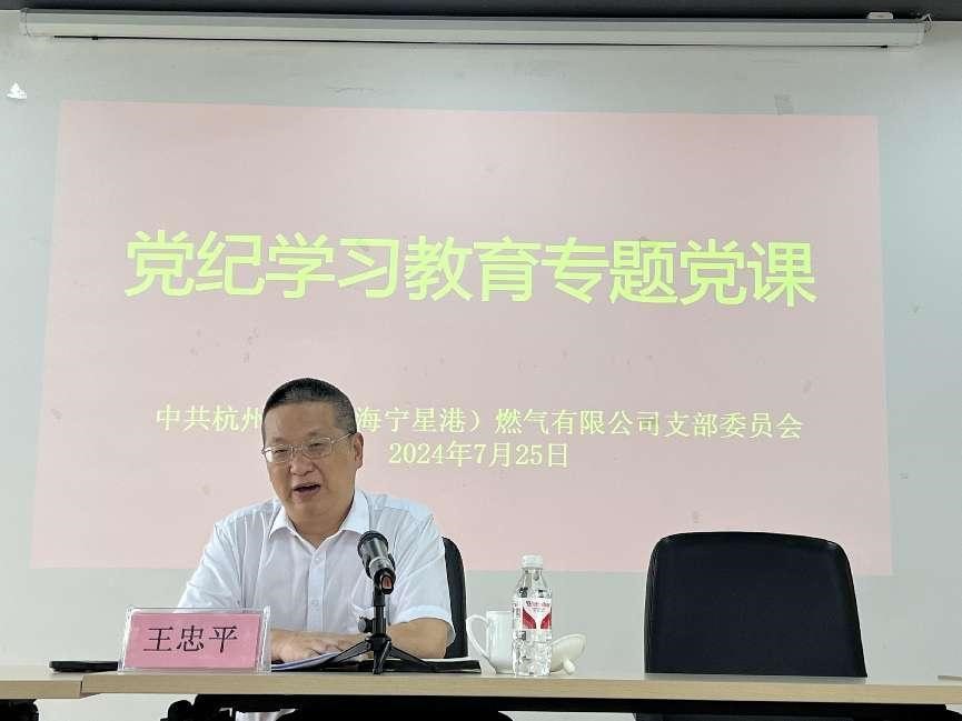 7月25日上午,錢江公司在燃氣學堂召開黨紀學習教育專題黨課暨七月員工大會,集團公司黨委委員、副總經理王忠平出席,公司兩級干部、全體黨員、重點崗位人員及班組長共計41人參加,會議由公司副總經理張翔主持。