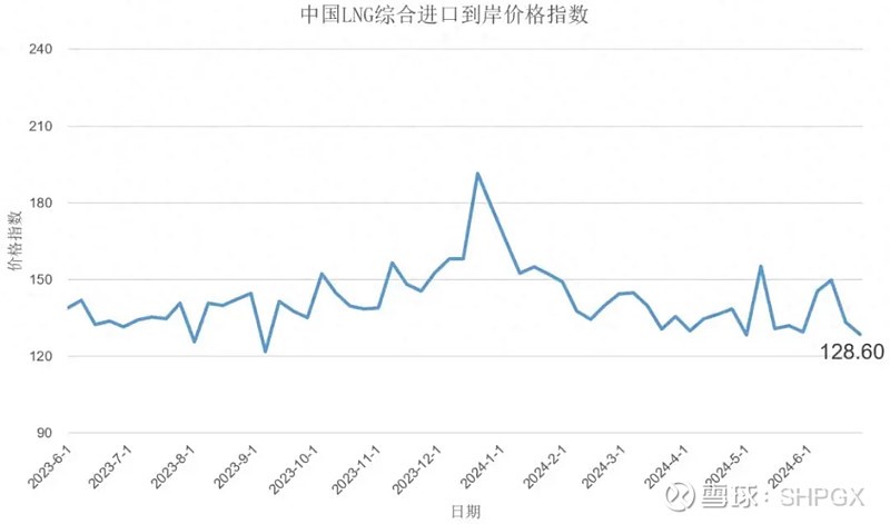 6月26日,海關總署全球貿易監測分析中心和上海石油天然氣交易中心聯合發布的中國LNG綜合進口到岸價格指數顯示,6月17日-23日中國LNG綜合進口到岸價格指數為128.60,環比下跌3.52%,同比下跌2.26%。