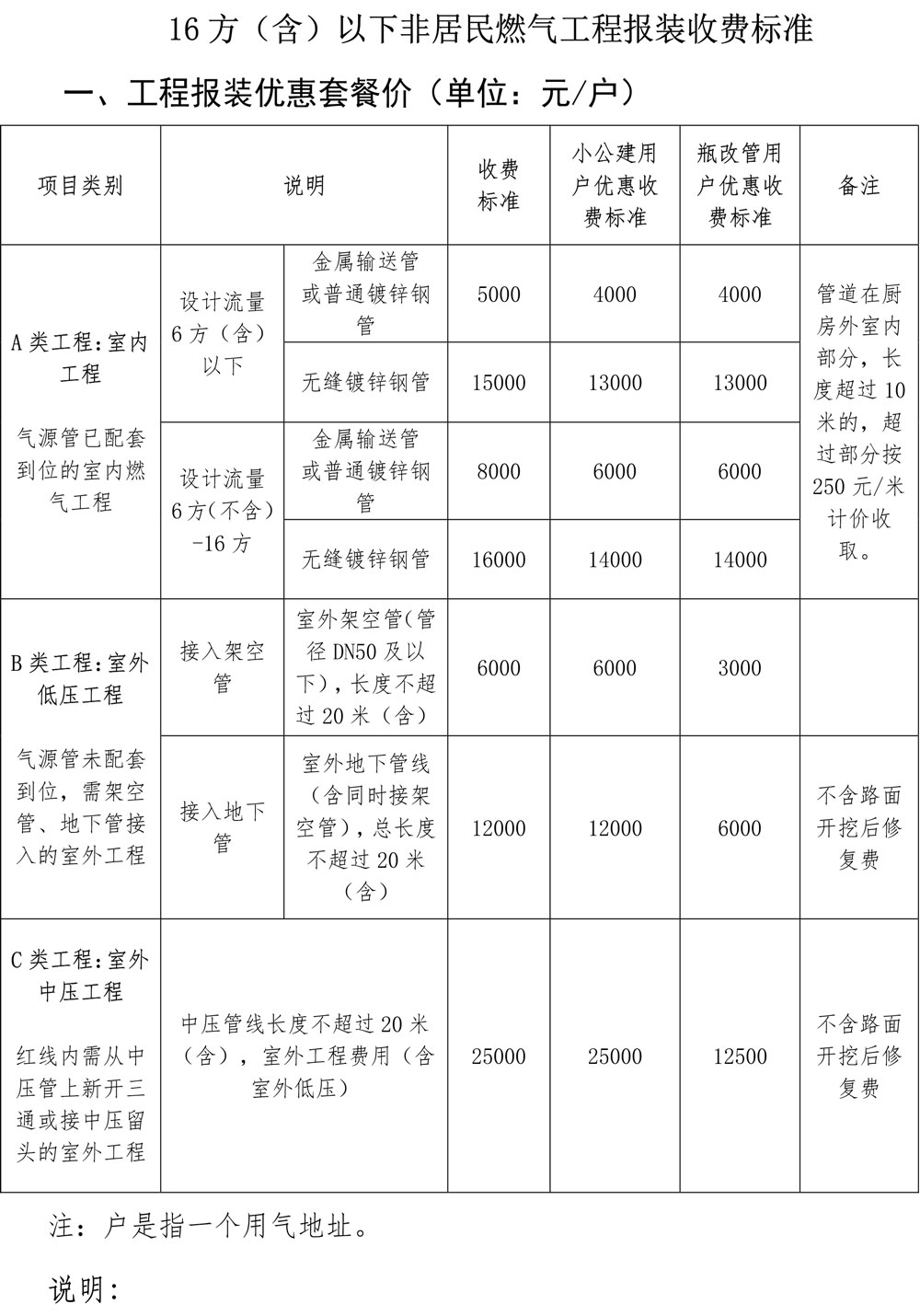 16方(含)以下非居民燃?xì)夤こ虉?bào)裝階段性優(yōu)惠收費(fèi)標(biāo)準(zhǔn)