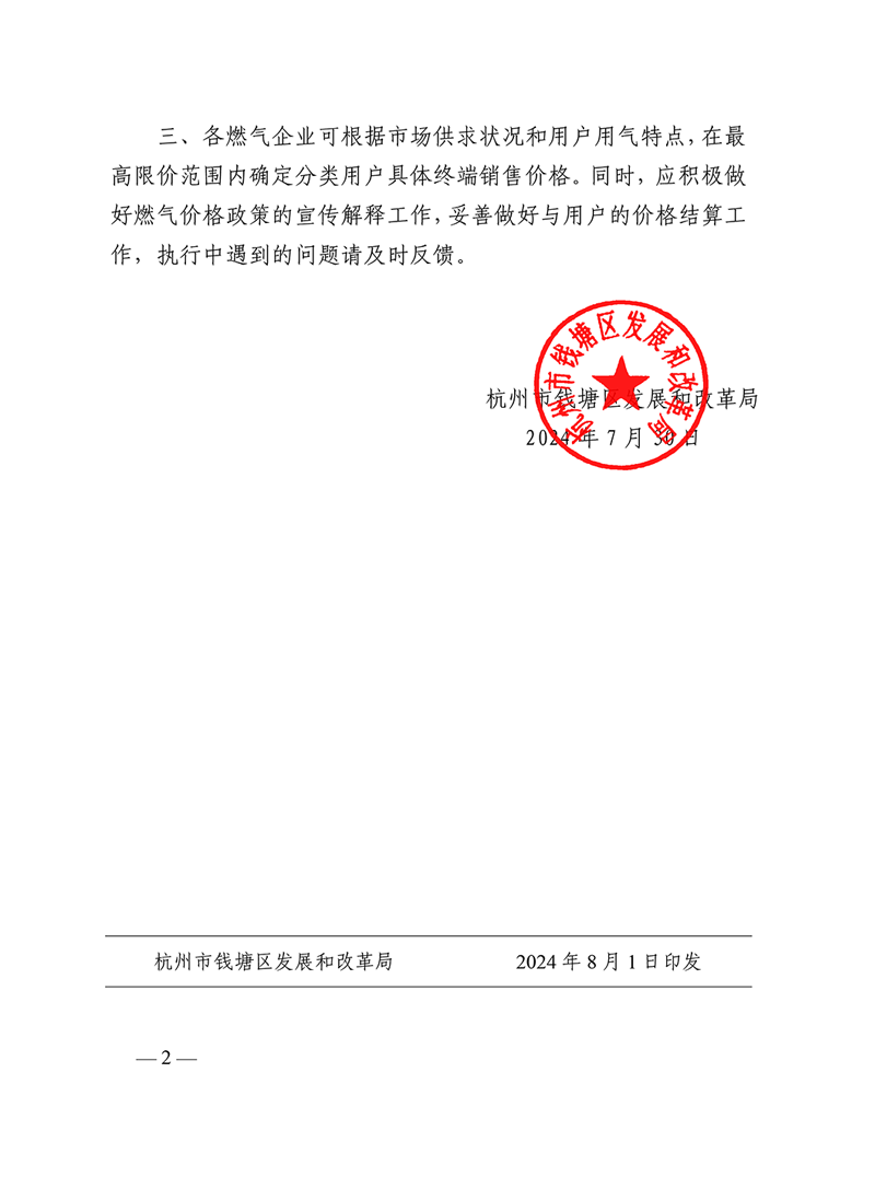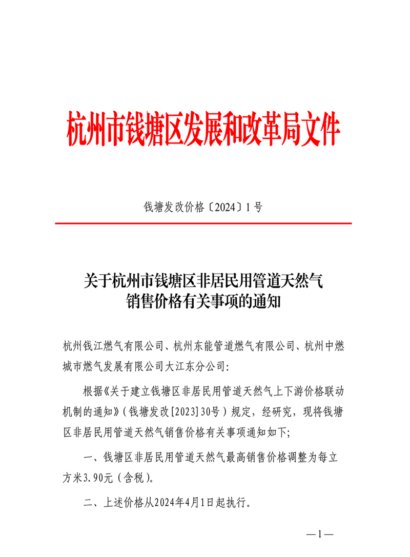 錢(qián)塘發(fā)改價(jià)格【2024】1號(hào)——關(guān)于杭州市錢(qián)塘區(qū)非居民用管道天然氣銷(xiāo)售價(jià)格有關(guān)事項(xiàng)的通知