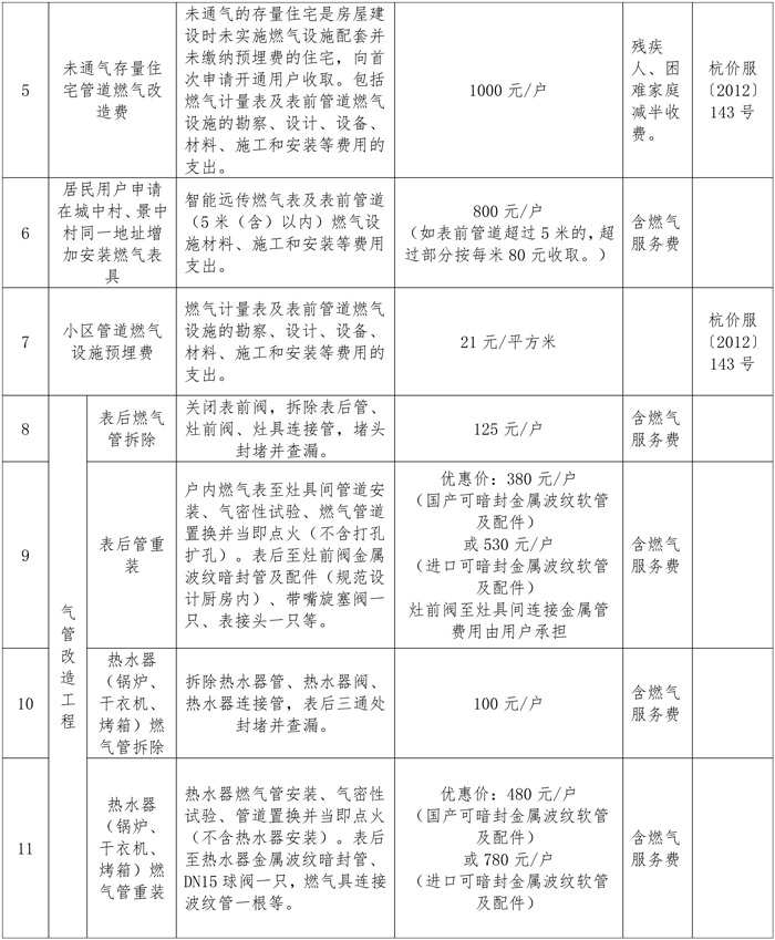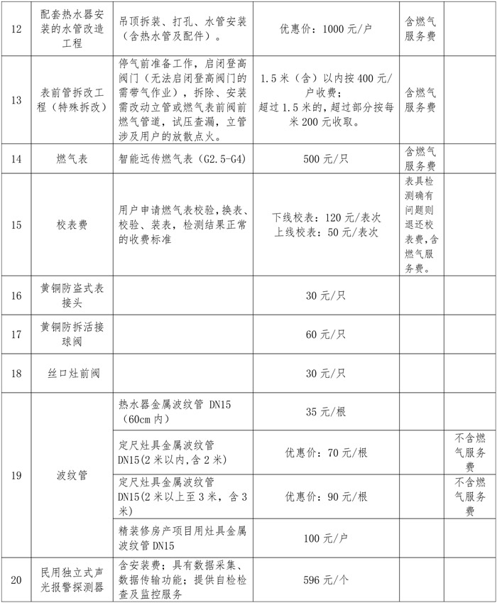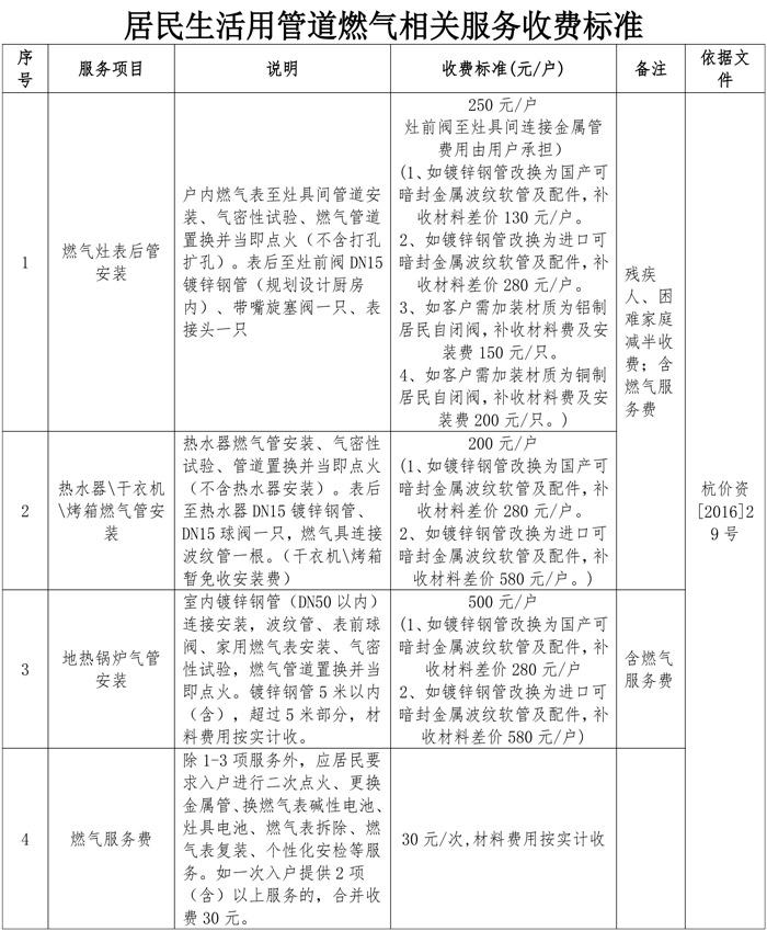 居民生活用管道燃氣相關服務收費標準(修訂)