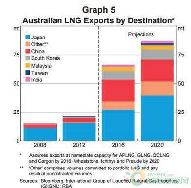2016年,澳大利亞的全年液化天然氣產量達到4520萬噸,較2015年增長近50%。但同期,澳洲液化天然氣出口量達3680萬噸,同比增長37.7%。也就是說,在過去一年中,澳洲有超過80%的液化天然氣出口到其他國家,僅有不到20%留給自用。