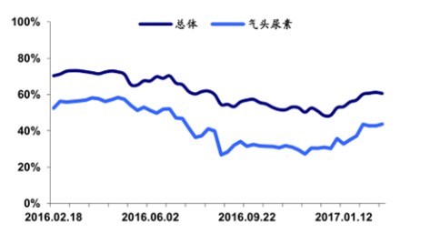化工產(chǎn)品價(jià)格穩(wěn)定,化工用氣保持平穩(wěn)。我國(guó)天然氣作為化工原料主要用于生產(chǎn)尿素、純堿和甲醇。天然氣在化工企業(yè)生產(chǎn)成本占比較高,其中氮肥占 40-70%,純堿占30%,甲醇占 40%.由于國(guó)家對(duì)化工天然氣價(jià)格調(diào)整,優(yōu)惠補(bǔ)貼政策相繼取消,天然氣制尿素、純堿和甲醇的成本抬高,失去競(jìng)爭(zhēng)優(yōu)勢(shì)。以尿素行業(yè)為例,2016 年由于尿素成本抬高,產(chǎn)品價(jià)格下降,行業(yè)盈利空間變窄,落后產(chǎn)能得以淘汰,行業(yè)供需關(guān)系有所緩解。盡管氣頭尿素成本較高,并不具有競(jìng)爭(zhēng)優(yōu)勢(shì),但在國(guó)家進(jìn)行供給側(cè)改革,嚴(yán)格限制尿素新增產(chǎn)能以及尿素面臨國(guó)內(nèi)剛需和出口需求的情況下,尿素價(jià)格回升,氣頭尿素開(kāi)工率有所提高,化工用氣也有望保持平穩(wěn)。