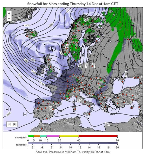 寒流使大陸大部分地區的溫度和降雪量都降至零下,從阿爾卑斯山腳下的瑞士到挪威的峽灣,今年入冬以來的氣溫都低于往年平均水平。