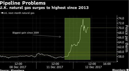 能源咨詢公司Wood Mackenzie的Massimo Di-Odoardo表示,歐洲天然氣市場正在面臨一場“超強風暴”,可能使價格保持高位。據估計,英國在Forties管道系統的停運期間可能已經損失了約10%的冬季需求。“歐洲地區還有大量儲存可以解決這個問題。”