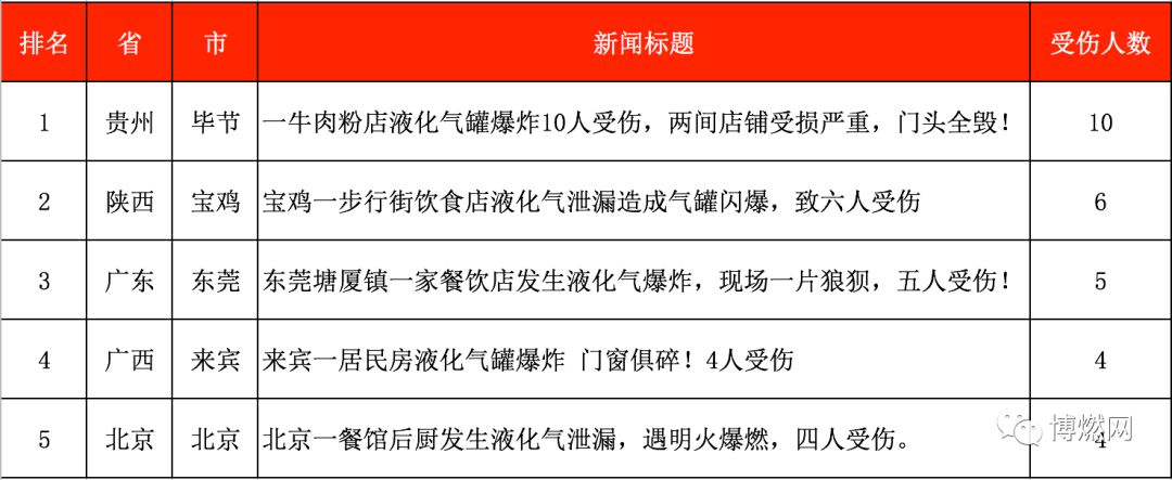 2018年4月五大燃氣事故排行榜