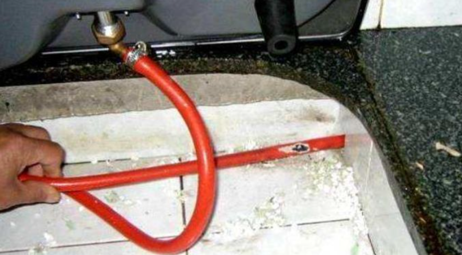 4、膠管過長:容易被腳踏或是被刃具刺破,也可能會因為自身壓擠導致變形破裂,很容易造成燃氣泄漏事故。燃氣膠管一般不能超過兩米,嚴禁安裝“三通”。