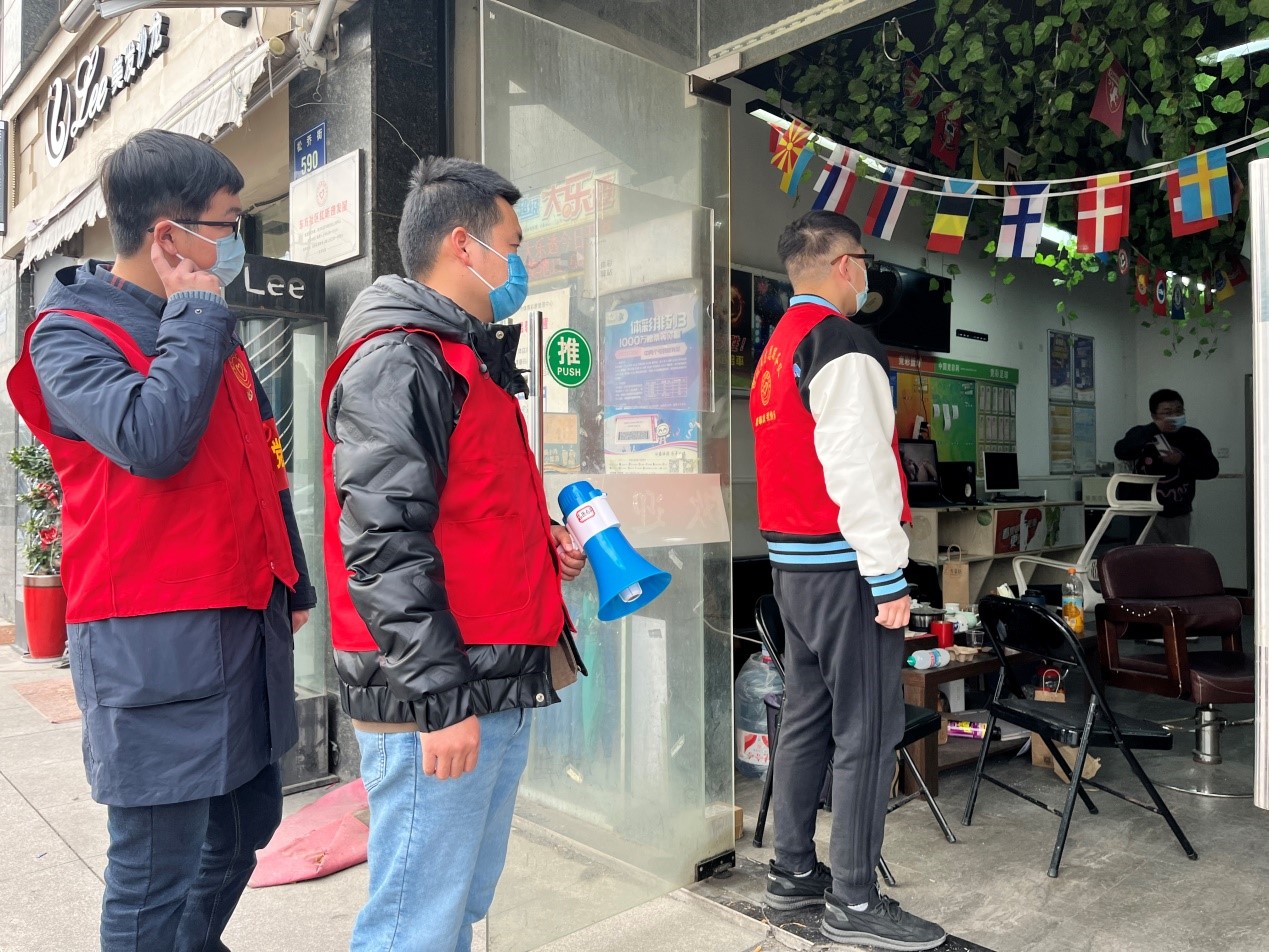 青年突擊隊(duì)到達(dá)東方社區(qū)后,迅速穿上紅色志愿小馬甲,以飽滿的精神投身到疫情防控的主戰(zhàn)場(chǎng),在小區(qū)南門(mén)對(duì)進(jìn)入人員進(jìn)行健康碼的核對(duì)和測(cè)溫工作,向居民宣傳防疫知識(shí),并對(duì)不佩戴口罩的居民進(jìn)行宣傳與勸導(dǎo),鮮艷的紅色在陽(yáng)光下形成一道明麗的風(fēng)景線。在社區(qū)沿街商鋪,志愿者們帶上宣傳小喇叭巡邏檢查,對(duì)商鋪內(nèi)店家不符合疫情管理規(guī)范的行為進(jìn)行了勸阻和建議。在志愿服務(wù)過(guò)程中青年突擊隊(duì)員始終保持嚴(yán)謹(jǐn)認(rèn)真的態(tài)度,為社區(qū)疫情防控工作盡心盡力,得到社區(qū)工作人員的一致稱(chēng)贊和認(rèn)可。