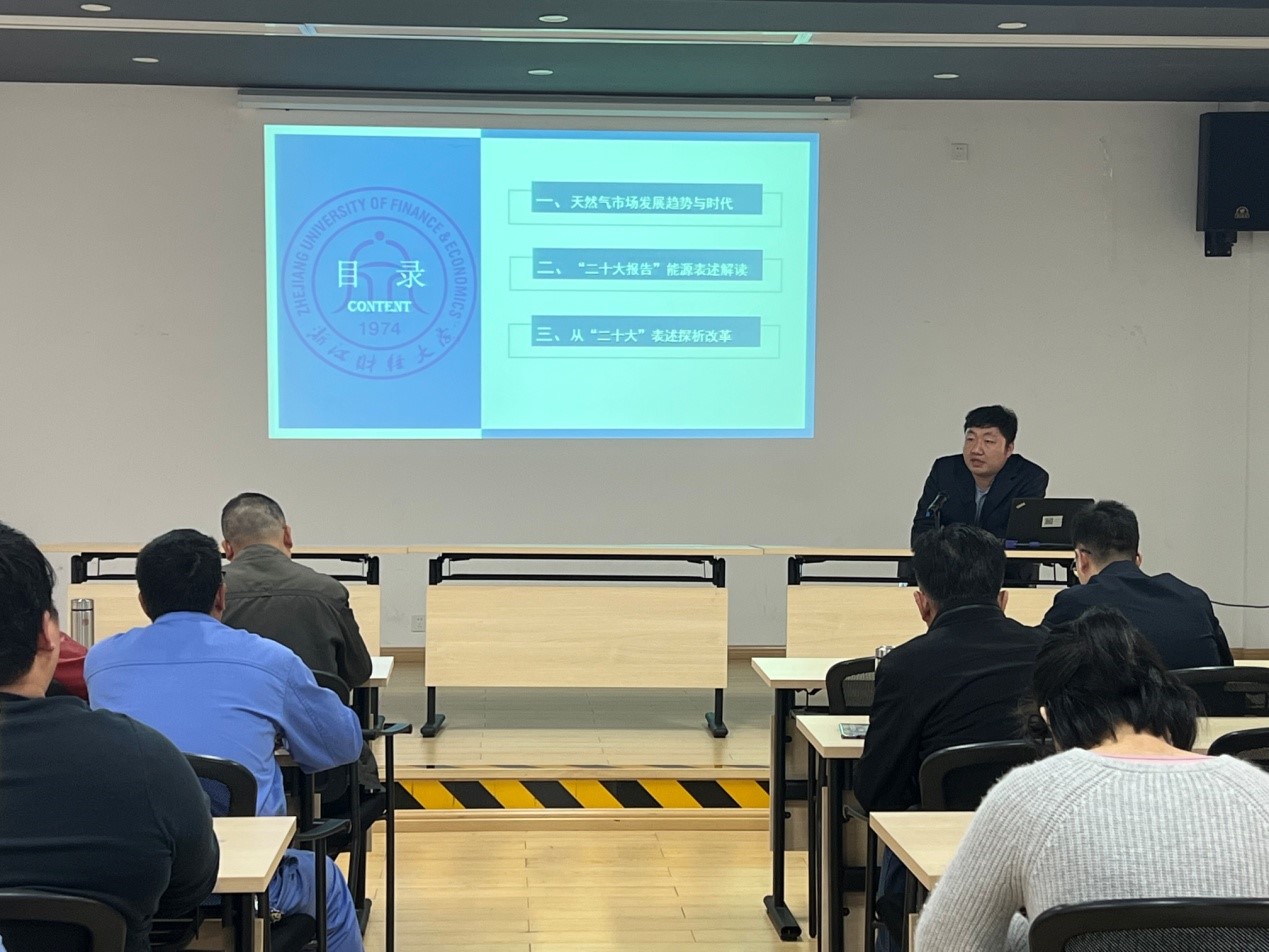 為深入學習宣傳貫徹黨的二十大精神,推進天然氣體制改革,抓好落實冬保工作,11月22日下午,東部聯合支部與浙江財經大學中國政府管制研究院教工第一黨支部開展共建交流活動,并特邀中國政府管制研究院副研究員、博士后劉相鋒作從“二十大報告看天然氣行業改革”主題學習,東部聯合支部黨員干部、各班組長累計三十余人參加。