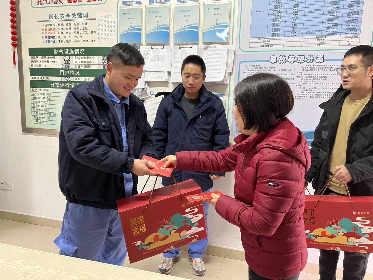 趙書(shū)記走訪輸配運(yùn)行班組、熱線調(diào)度班組、客戶服務(wù)班組、保安及食堂崗位的值守人員,“給大家拜年啦!大家辛苦了!”每到一處,趙書(shū)記都與大家一一親切握手,仔細(xì)詢問(wèn)和了解生產(chǎn)運(yùn)行及節(jié)日期間值守保障情況,對(duì)值班人員的辛勤付出和奉獻(xiàn)表示感謝,并為他們送上了誠(chéng)摯的慰問(wèn)和美好的祝福,勉勵(lì)大家守好自己的崗位,全力以赴做好春節(jié)期間燃?xì)獗U瞎ぷ鳌?span>