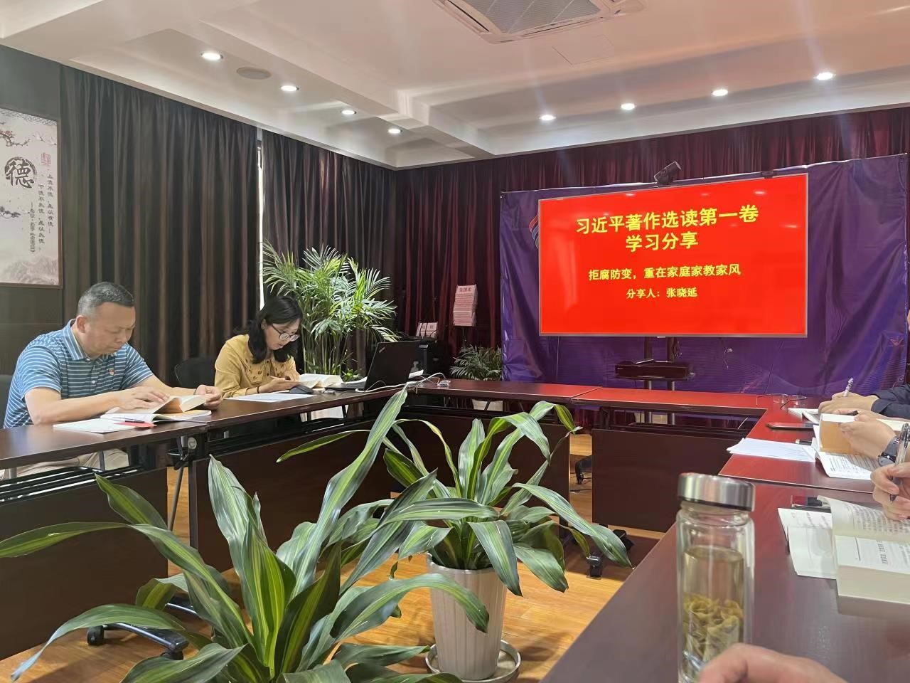 支部黨員首先集中觀看了廉政教育視頻“中隊長的‘致富經(jīng)’”,并由紀(jì)檢委員張曉延帶領(lǐng)大家一起學(xué)習(xí)《黨性黨風(fēng)黨紀(jì)教育讀本》摘錄篇章,自覺加強(qiáng)黨性黨風(fēng)黨紀(jì)修養(yǎng),按照黨性原則進(jìn)行自我教育、自我鍛煉、自我改造和自我完善。隨后支部開展了《習(xí)近平著作選讀第一卷》讀書交流,由張曉延同志和殷一珍同志分別分享了以“拒腐防變,重在家庭家教家風(fēng)”、“實干才能夢想成真---談工匠成長”為主題的心得體會。