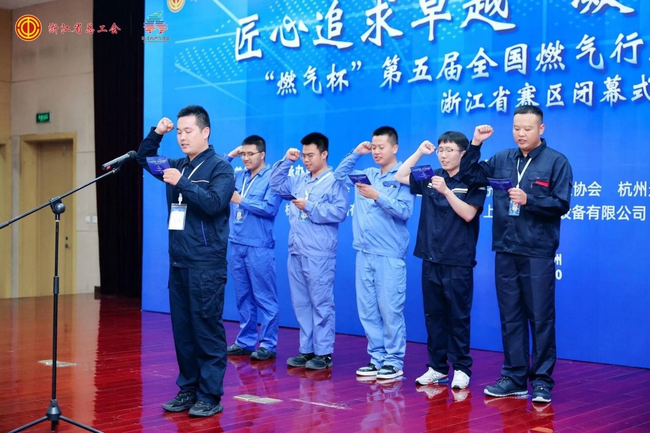 頒獎(jiǎng)儀式后,王志池代表浙江賽區(qū)選手進(jìn)行宣誓,滿懷信心沖擊國賽,這不僅對(duì)他個(gè)人職業(yè)技能的肯定,也是為杭燃大家庭增光添彩,相信他一定能厚積而薄發(fā),在全國大賽上再創(chuàng)佳績!(文/圖:王志池;審核:何香)