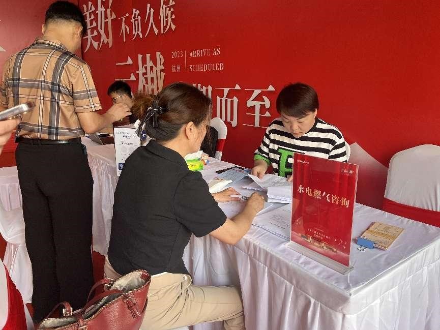 2023年9月8日-9月12日,江山云樾北府1416戶燃氣“新戶”新業主喜提“愛房”,剛剛榮獲杭州市“最美窗口”榮譽稱號的錢塘區政務服務中心燃氣窗口的黨團志愿者又一如既往地入駐收房現場,開展為期5天的現場服務活動。