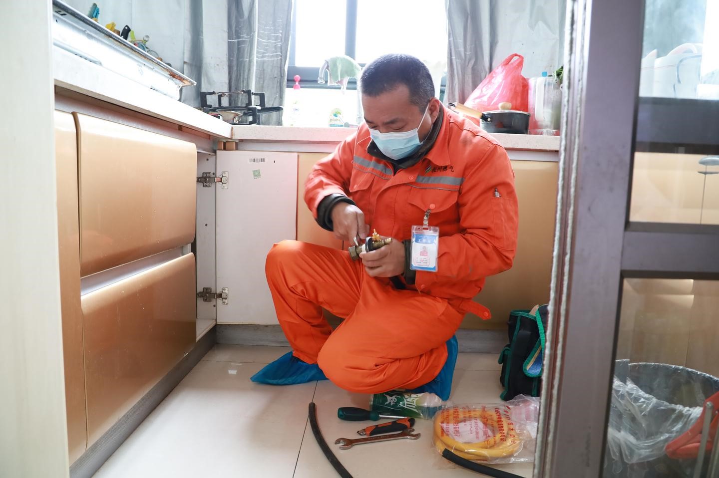 家住夢琴灣佳苑小區用戶謝女士,家中膠管長期未更換老化發硬很難拆除,安裝人員想辦法將膠管先軟化再拆除。但在安裝金屬管過程中,又發現隔板開孔小、操作空間狹小等問題,安裝人員隨即按照導則選用合適的新開孔設備,并嘗試用軟管牽引金屬管至灶前閥處,最終成功完成更換。"實在太感謝了,現在放心多了!"謝女士高興地表示。