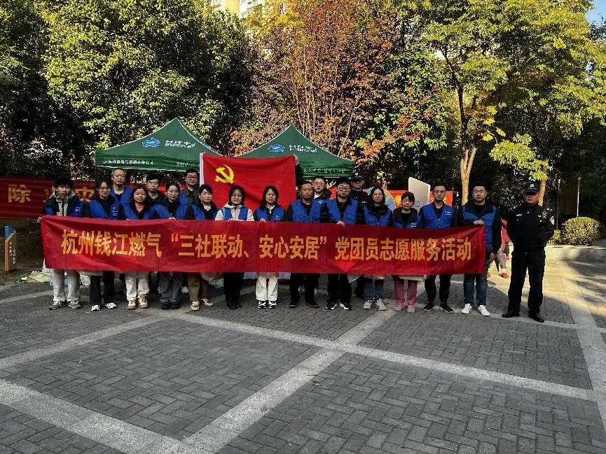 11月25日上午,錢江燃氣21名黨團員志愿者來到下沙街道銘和社區,開展“三社聯動、安心安居”杭燃服務進社區活動。