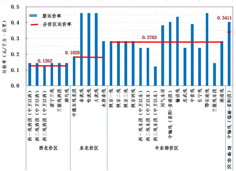 對比可見,對具體管道而言,新核定的“一區一價”在原“一企一價”基礎上有漲有降。分價區而言,西北價區為國產天然氣產地和中亞進口天然氣戰略通道,管道建成較早,新核定運價率與西三線原運價率接近,為四個價區最低。東北價區為俄羅斯天然氣進口戰略通道,核定的價區運價率與最晚投產的中俄東線北段原試行價格基本持平。西南價區為緬甸天然氣進口戰略通道,地形最為復雜,建設成本高,管道投產時間晚,管輸量小,新核定運價率相比中緬線原運價率降幅約14.7%,為四個價區最高。中東部價區為我國天然氣主要消費區,新核定的價區運價率與價區內主要跨省管道陜京一、二、三、四線原運價率接近。