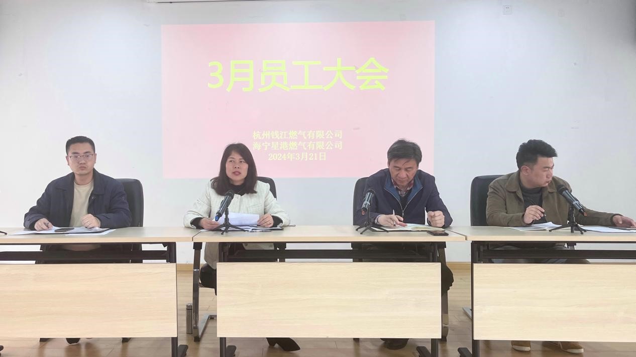 3月21日下午,錢江公司在一樓燃氣學堂召開三月員工大會,公司領導班子、中層干部、班組長及部門員工共計48人參加,會議由公司副總經理俞勤峰主持。